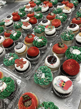 Paquet de 6 cup cakes (3 pâte blanche et 3 pâte au chocolat) décorés pour Noël. Photo à titre indicatif, les modèles peuvent changer d'une année à l'autre