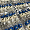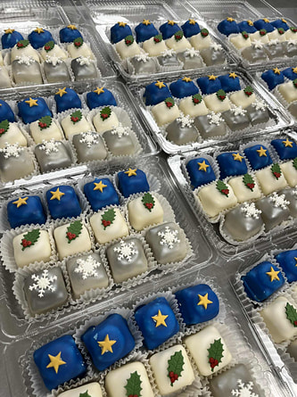 Petites bouchées de gâteau blanc avec crémage blanc trempées dans le fondant mou