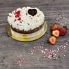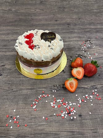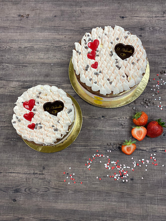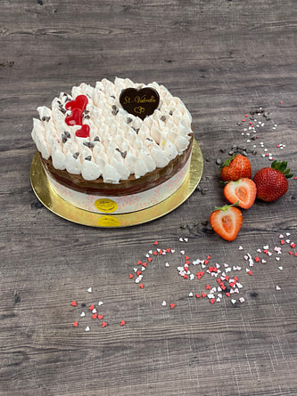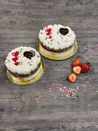 Mousse fromage chocolat avec une insertion de gelée à la fraise sur un fond de chapelure de biscuit au chocolat le tout surmonté d'une mousse à la fraise.