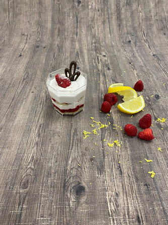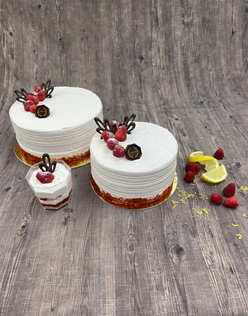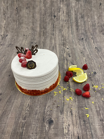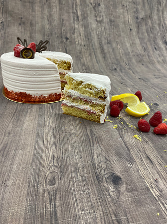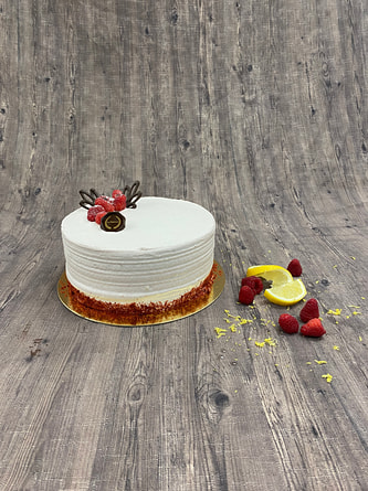 Génoise au citron et purée de framboises, le tout entrecoupé d'une crème onctueuse framboises et mascarpone.